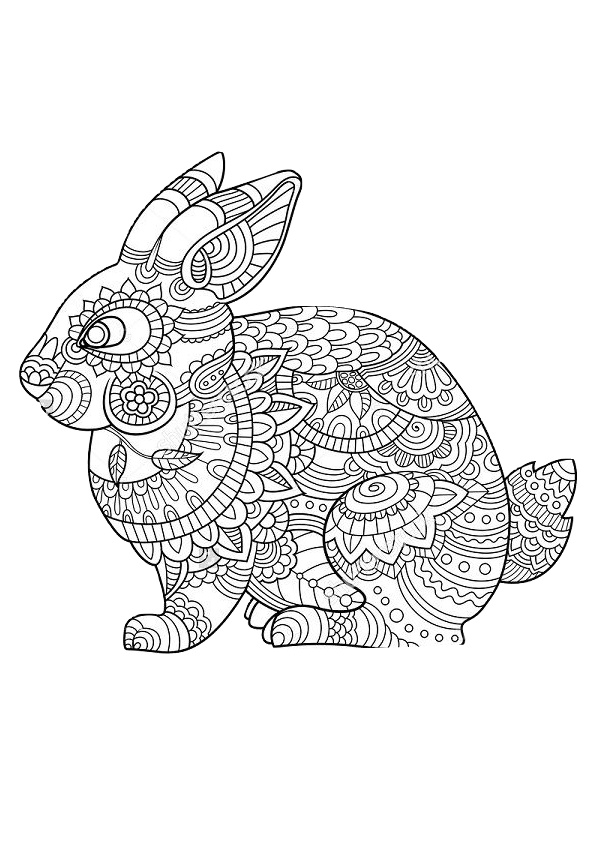 Printable Zentangle Rabbit Mandala Coloring Pages for Adults Hard to Color
